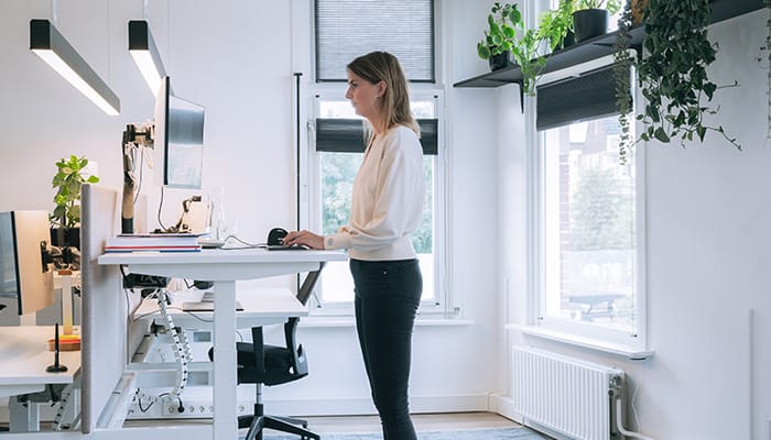 Cambiando regolarmente posizione durante la giornata lavorativa, stimoli la circolazione sanguigna e previeni disturbi fisici. In base all’effettivo utilizzo dello schermo, il coach Sit-Stand regola la tua scrivania da seduta a in piedi o a un’altezza intermedia (per l’uso di uno sgabello in piedi o di una cyclette da scrivania). È possibile impostare personalmente le pause e programmare* la scrivania elettrica per alzarsi o abbassarsi all’altezza desiderata.